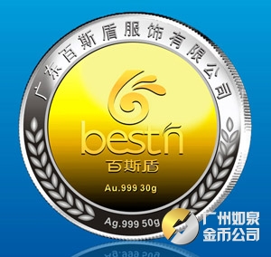 2013年11月廣東百斯盾公司銀包金紀念幣訂做制做銀鑲金紀念章