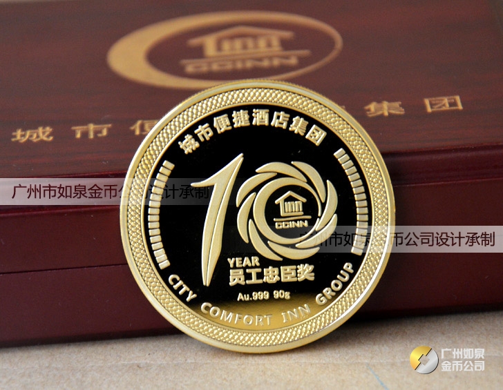 廣西桂林城市便捷酒店集團工作在崗服務十年員工金牌定制