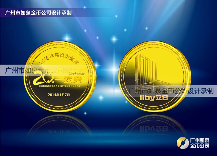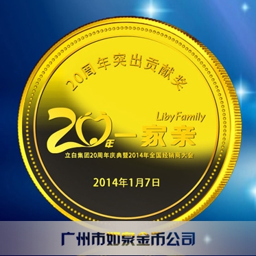 定制廣州立白集團20周年定制純金紀念幣、制作純金紀念章