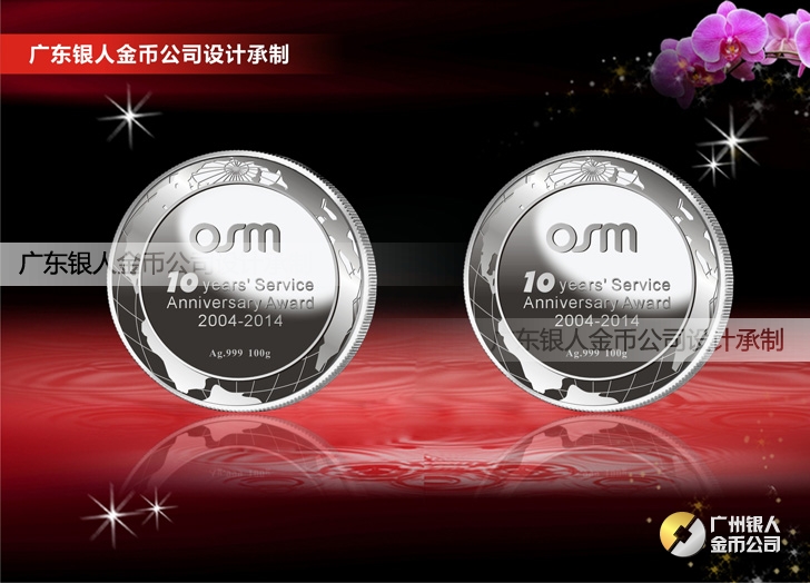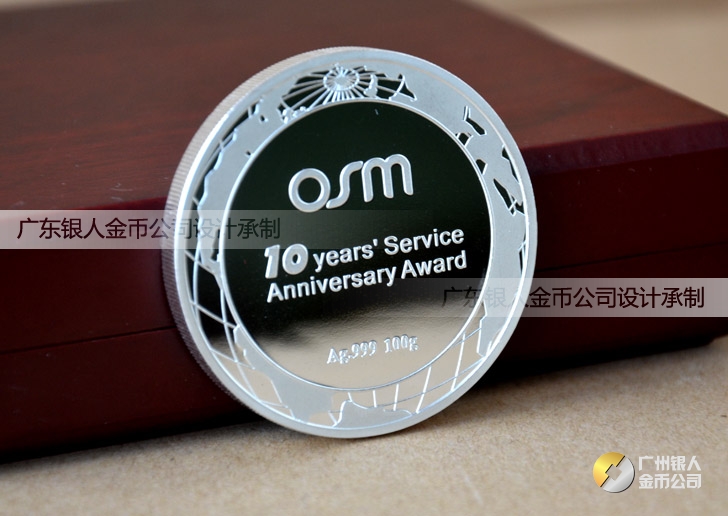 定制瑞典OSM Group-尚科思表彰在崗工作滿十周年服務(wù)獎純銀紀念章