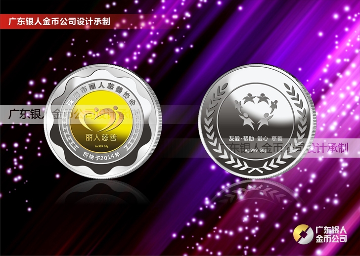 珠海麗人慈善會成立周年慶典定制鑲金銀紀念幣定制、純銀鑲金銀紀念幣定制