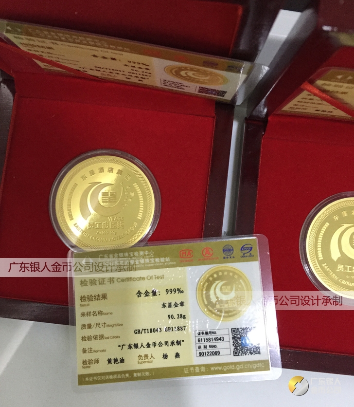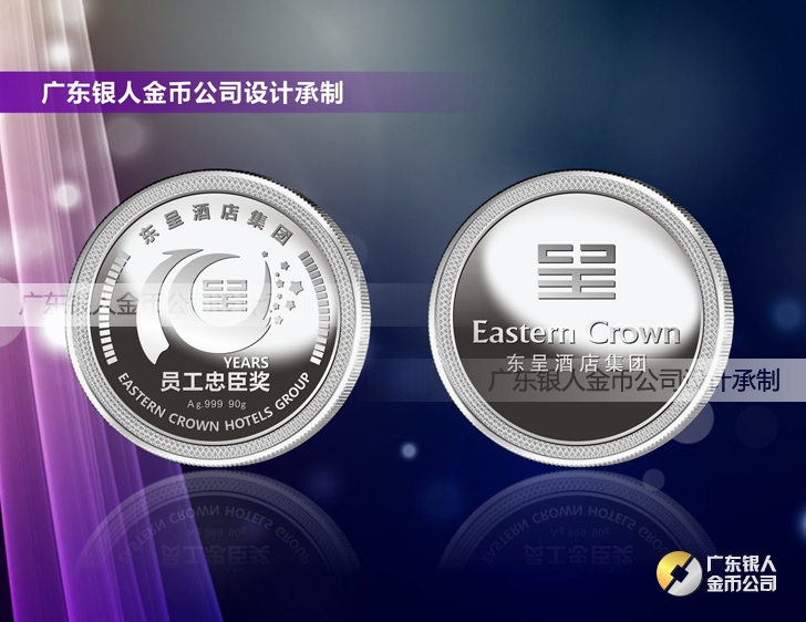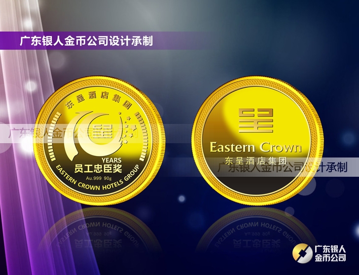 東呈酒店集團年會獎勵十年老員工純銀紀念章制作、千足金紀念金幣定制
