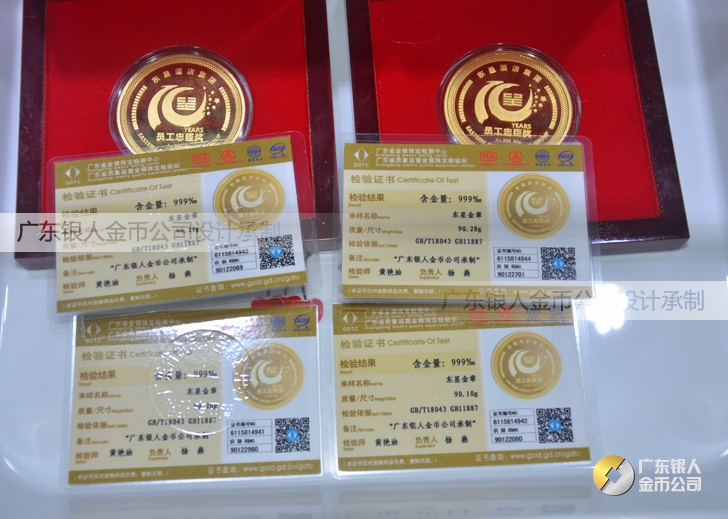 廣東銀人金幣公司承接客戶個性化定制的金銀幣、金銀章、金銀條、金銀牌、金銀盤均由國家質監部門、嚴格檢測、權威鑒定: