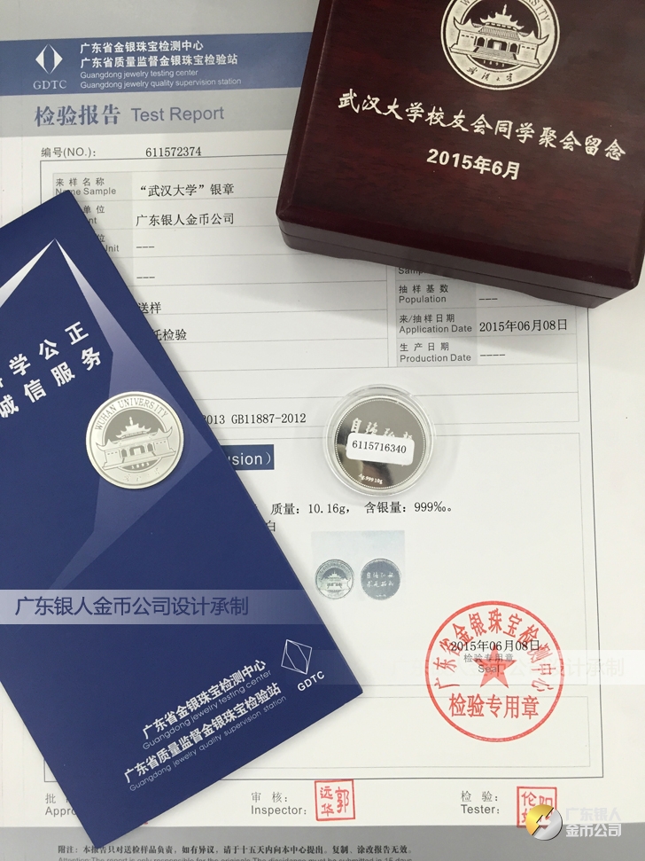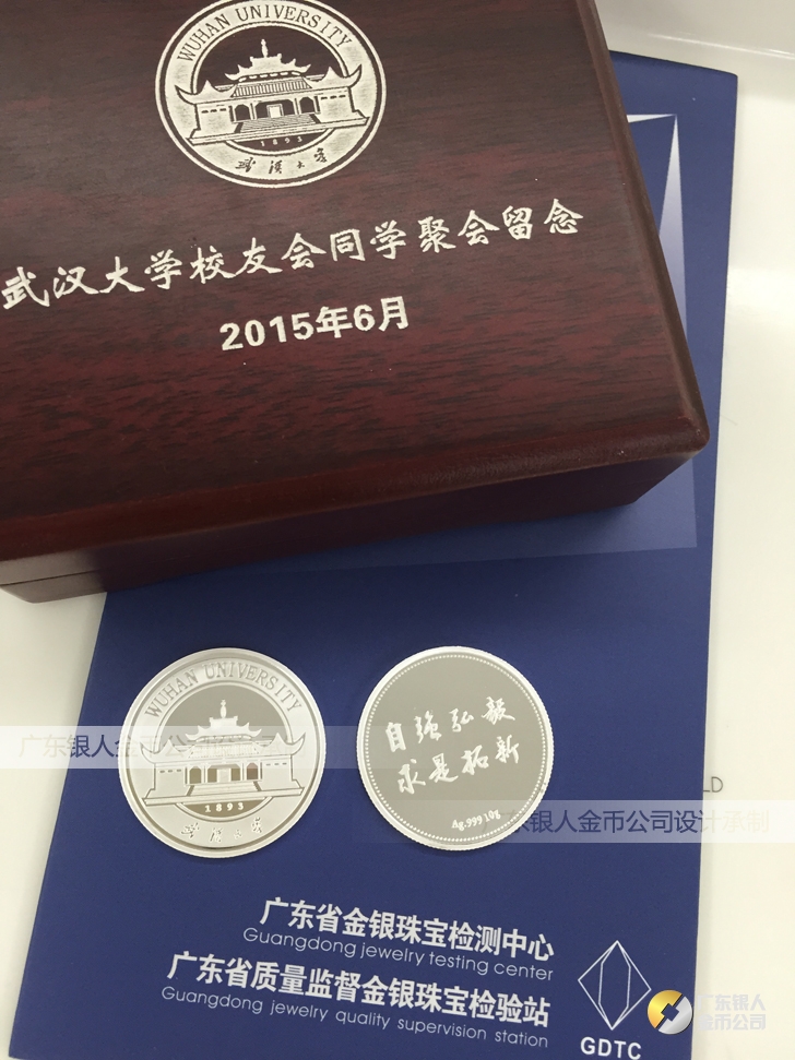 2015年6月制作 武漢大學校友會老師同學聚會紀念銀章定制