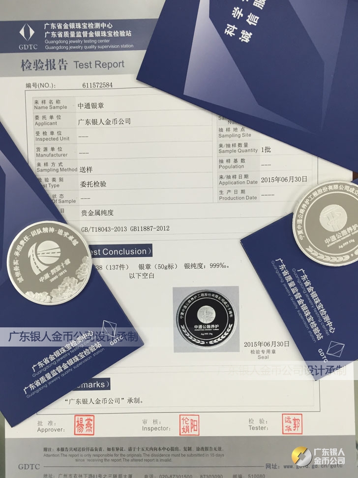 廣東銀人金幣公司承接客戶(hù)個(gè)性化定制的金銀幣、金銀章、金銀條、金銀牌、金銀盤(pán)均由國(guó)家質(zhì)監(jiān)部門(mén)、嚴(yán)格檢測(cè)、權(quán)威鑒定: