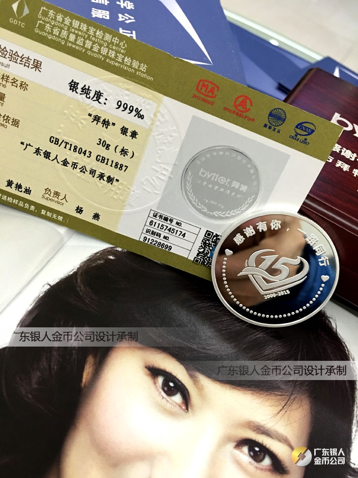 2015年12月定制 深圳拜特公司15周年慶純銀銀幣定制