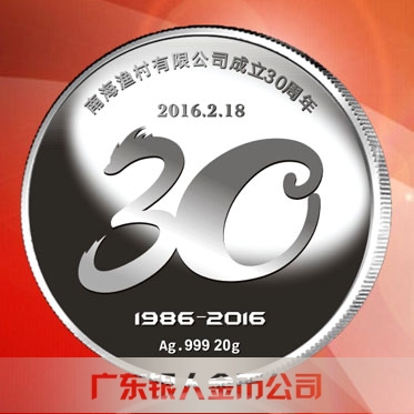 2016年1月定制 南海漁村成立30周年AU999純銀紀念幣制作