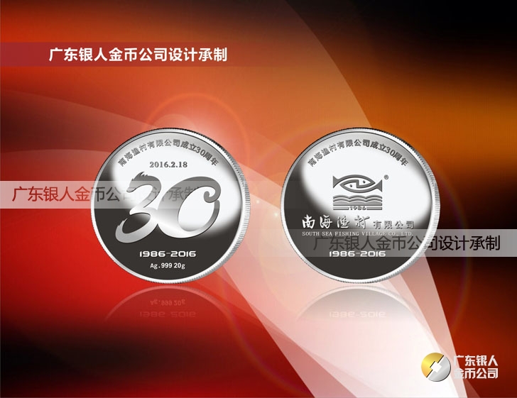 2016年1月制作 南海漁村成立30周年AU999純銀紀念幣定制
