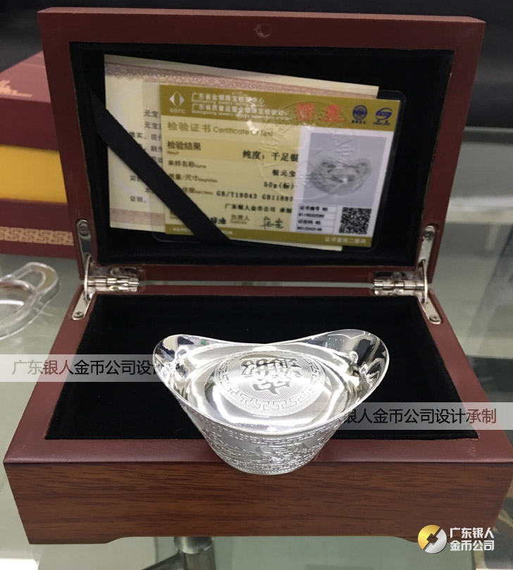 廣東銀人金幣公司承接客戶個性化定制的金銀幣、金銀章、金銀條、金銀牌、金銀盤均由國家質監部門、嚴格檢測、權威鑒定:
