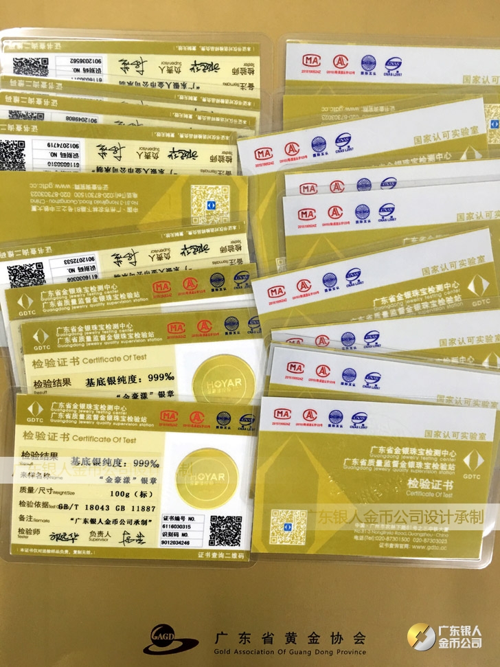 廣東銀人金幣公司承接客戶個性化定制的金銀幣、金銀章、金銀條、金銀牌、金銀盤均由國家質(zhì)監(jiān)部門、嚴格檢測、權(quán)威鑒定: