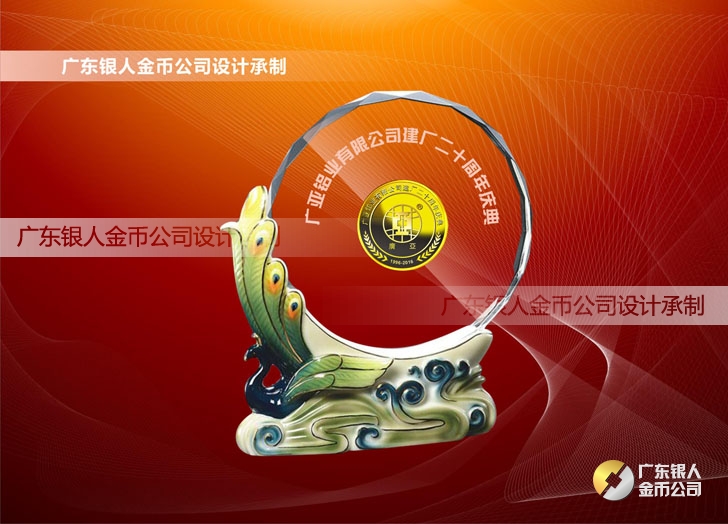 廣亞鋁業公司20周年慶鳥巢國家體育場工程項目建設功臣卓越貢獻獎黃金獎牌與黃金金牌、千足金純金金牌定制