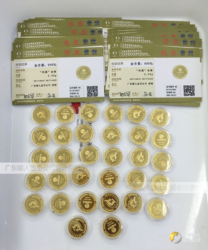 廣東銀人金幣公司承接客戶個性化定制的金銀幣、金銀章、金銀條、金銀牌、金銀盤均由國家質監部門、嚴格檢測、權威鑒定: