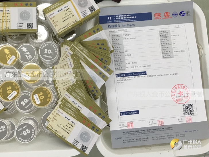 廣東銀人金幣公司承接客戶個性化定制的金銀幣、金銀章、金銀條、金銀牌、金銀盤均由國家質監部門、嚴格檢測、權威鑒定: