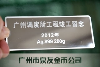 2012年4月廣鐵集團廣州調度所工程竣工紀念銀條定制