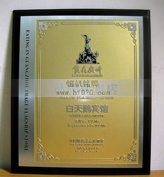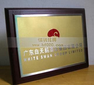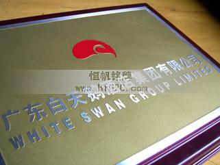 廣東白天鵝酒店集團有限公司——集團旗下“白天鵝賓館”榮譽牌匾,高級銘牌,高檔牌匾,高檔銅牌的生產與設計制作。