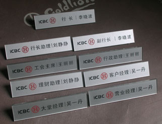 中國工商銀行黑龍江省分行——黑龍江省分行、各地市支行工作人員胸牌、營業部員工工牌、營業員工號牌及銀行服務窗口桌牌、柜臺水晶臺牌的設計與制作。