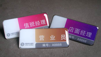 中國移動通信集團甘肅省白銀市分公司——為中國移動白銀市公司屬下全市營業廳制作移動公司胸牌、營業員胸牌、值班經理胸牌、社會渠道經理胸牌、店長員胸牌、店員胸牌。