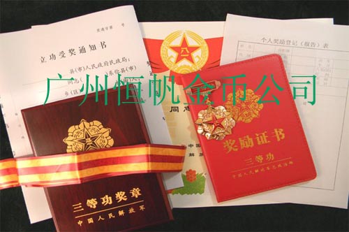 使用材質:金、銀、銅質紀念章分別按銅質鍍金、銅質鍍銀和紫銅材質制作,彰顯了榮譽的層次性。同時,每枚證章均配有木盒和說明卡片、綬帶,紀念章、略章。(見圖片—2、3、4、5)