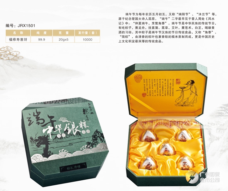 廣州市如泉金幣公司依托上海造幣廠和深圳國寶造幣廠等造幣公司以及金銀制品廠,設計定做紀念幣、紀念章、金銀幣、金銀章、金銀條,采用造幣工藝、選用千足金銀,個性定制金幣、定做銀幣、訂做金條、訂制銀條、制作紀念銀幣、制造紀念金幣、加工紀念銀章、生產紀念金章,純金純銀鑄造、全部國檢、權威檢測。