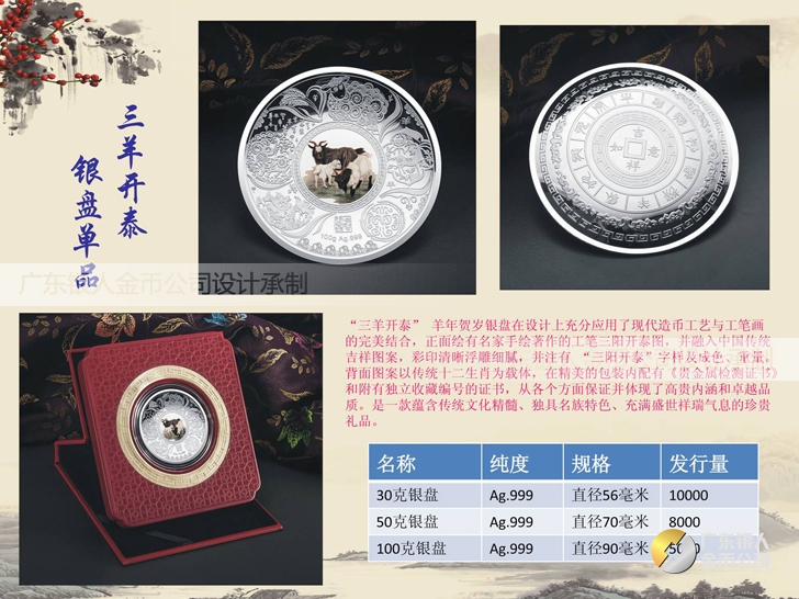 2015羊年賀歲銀盤訂做三羊開泰純銀銀盤定制