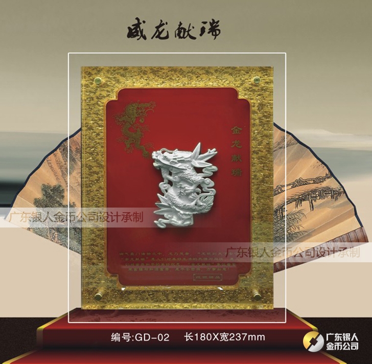 祥龍獻瑞浮雕純銀畫