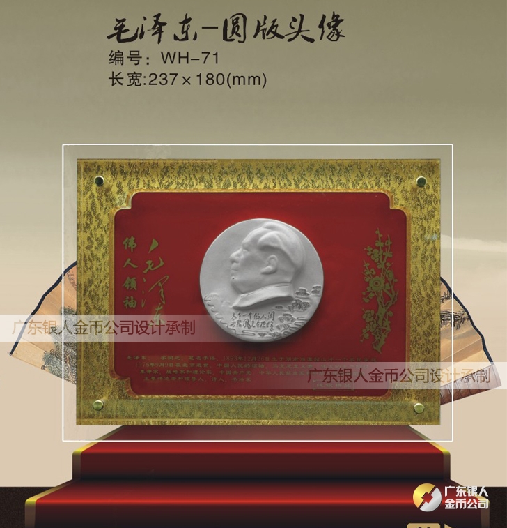 偉人毛澤東頭像純銀屏風擺件